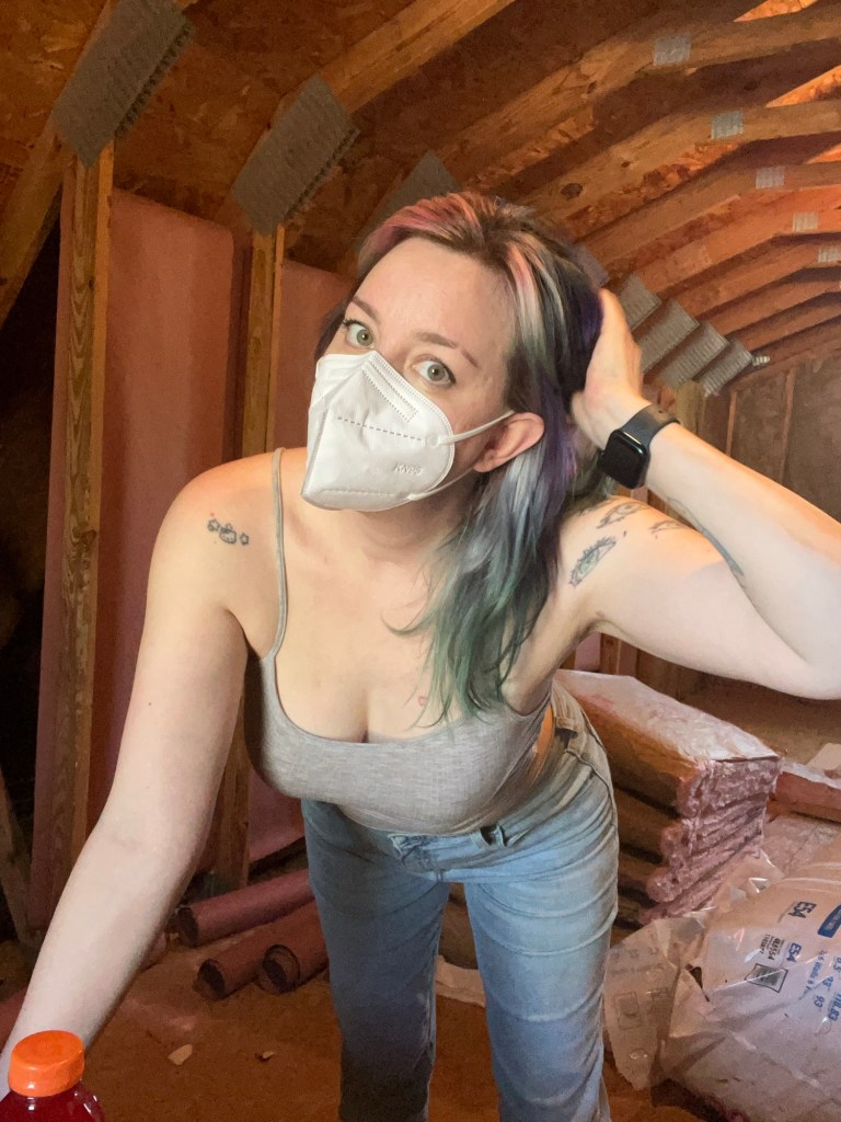 So far, I have fully insulated the upstairs, built and installed two half walls to separate the 12′ by 30′ space, framed out vents, and started putting up drywall. Spouse has helped with the electrical, because though I am trained for it I find it quite tedious. The drywall is going to take a while to get done and I still have to build a full wall downstairs and frame out a door, and install said door, and insulate that new wall, and add drywall to it. I’m possibly looking at a few weeks depending on how soon I can get a door delivered.